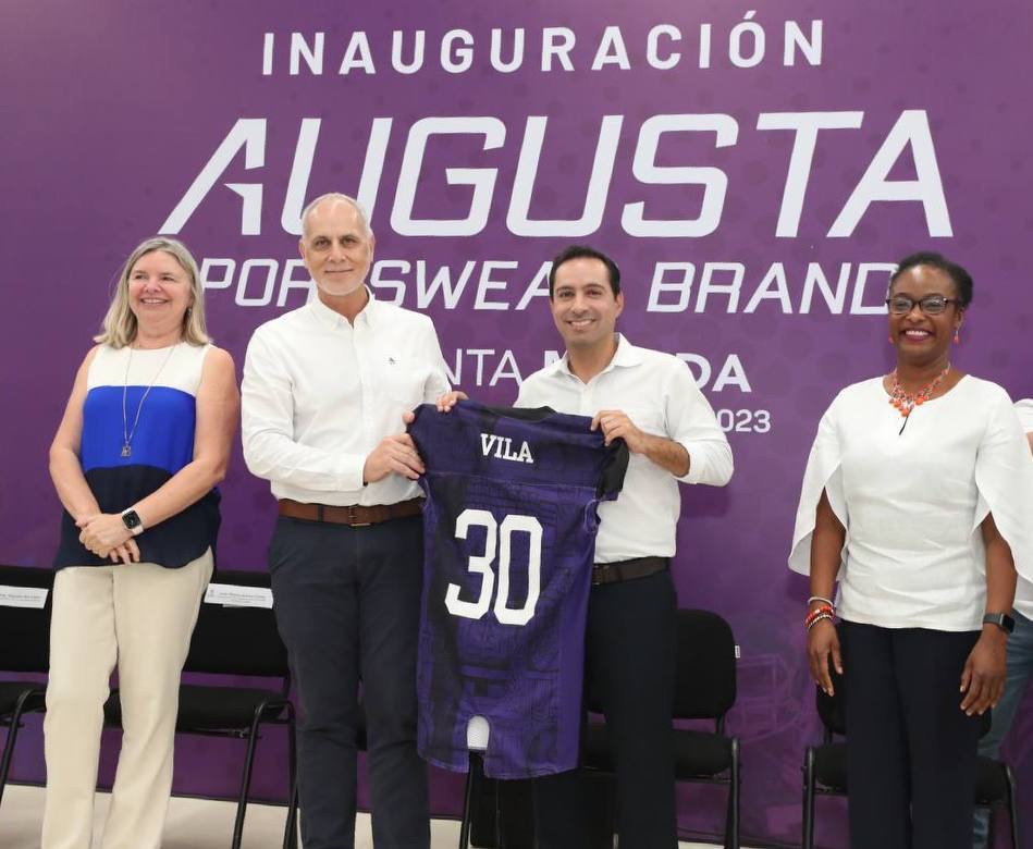 -El Gobernador Mauricio Vila Dosal inauguró la maquiladora de la firma dedicada a la fabricación de ropa y uniformes deportivos Augusta Sportswear Brands.
