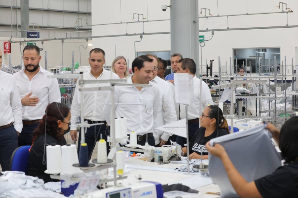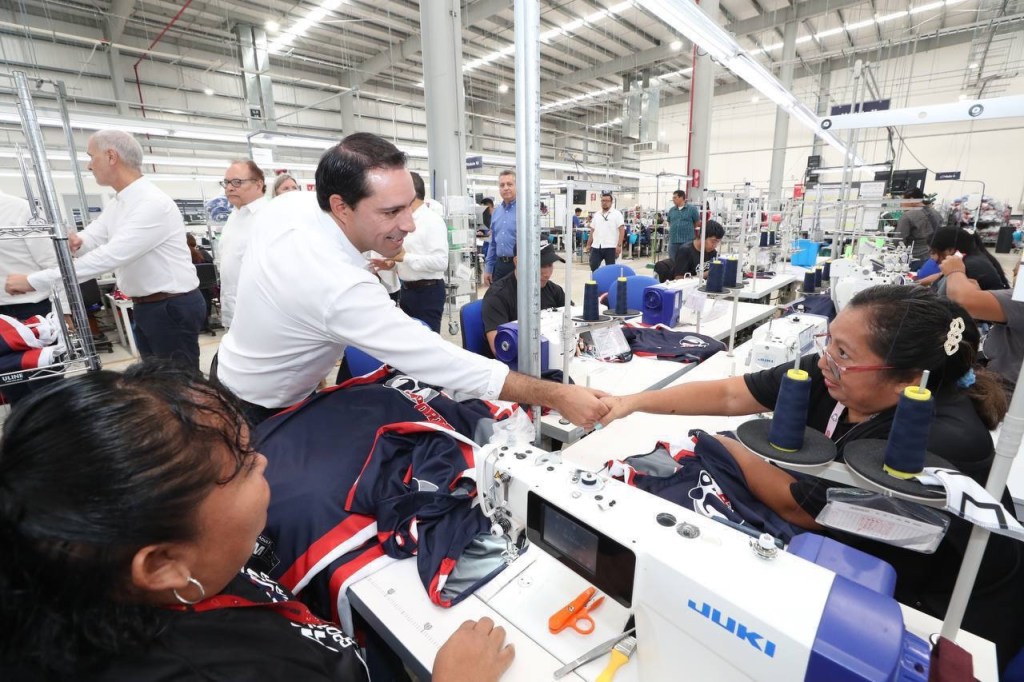 Vila Dosal, acompañado de vicepresidente de Manufactura México, Óscar Jiménez Hervella, y de la cónsul general de los Estados Unidos, Dorothy Ngutter, cortó el listón inaugural de esta planta que es fuente de trabajo de personas provenientes de municipios como Hunucmá, Ucú, Hoctún, Timucuy, Acanceh y Mérida, quienes elaboran piezas deportivas que son exportadas a Estados Unidos y Canadá.