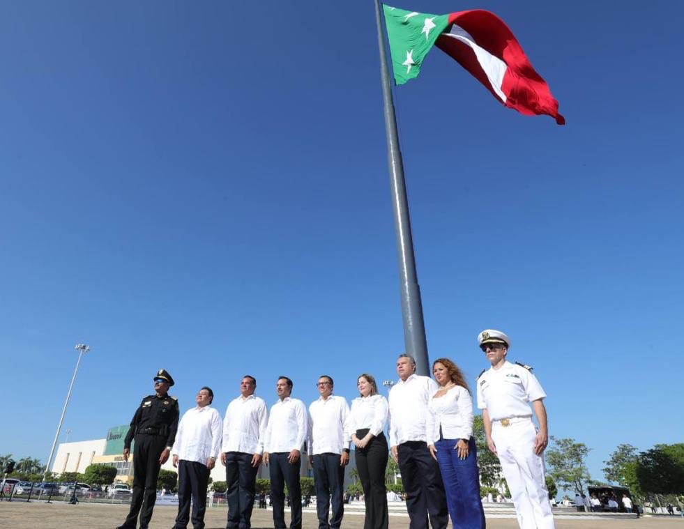 Acompañado de los representantes de los Poderes Legislativo, Víctor Hugo Lozano Poveda, y Judicial, María Carolina Silvestre Canto Valdés, Vila Dosal presidió esta ceremonia cívica, con lo que se da cumplimiento a la reforma al Artículo 116 de la Constitución Política de los Estados Unidos Mexicanos relacionada al reconocimiento de los símbolos distintivos de las entidades federativas.