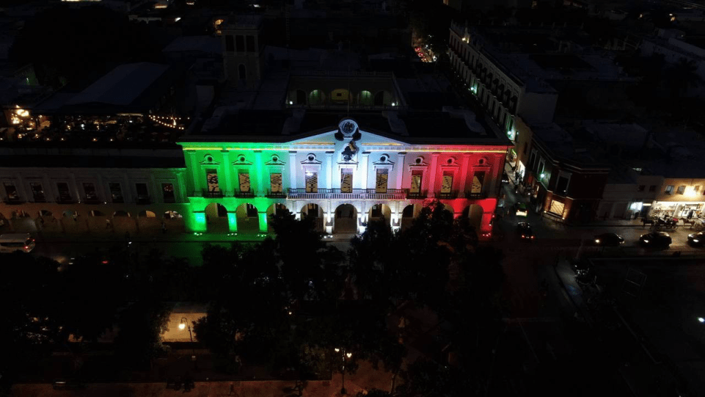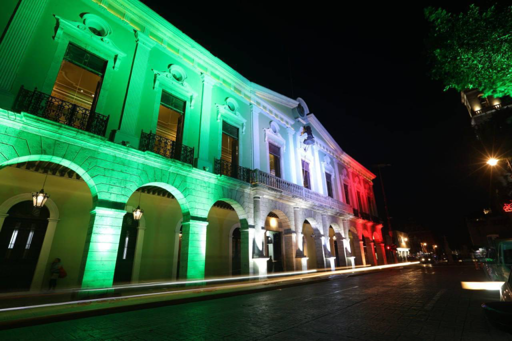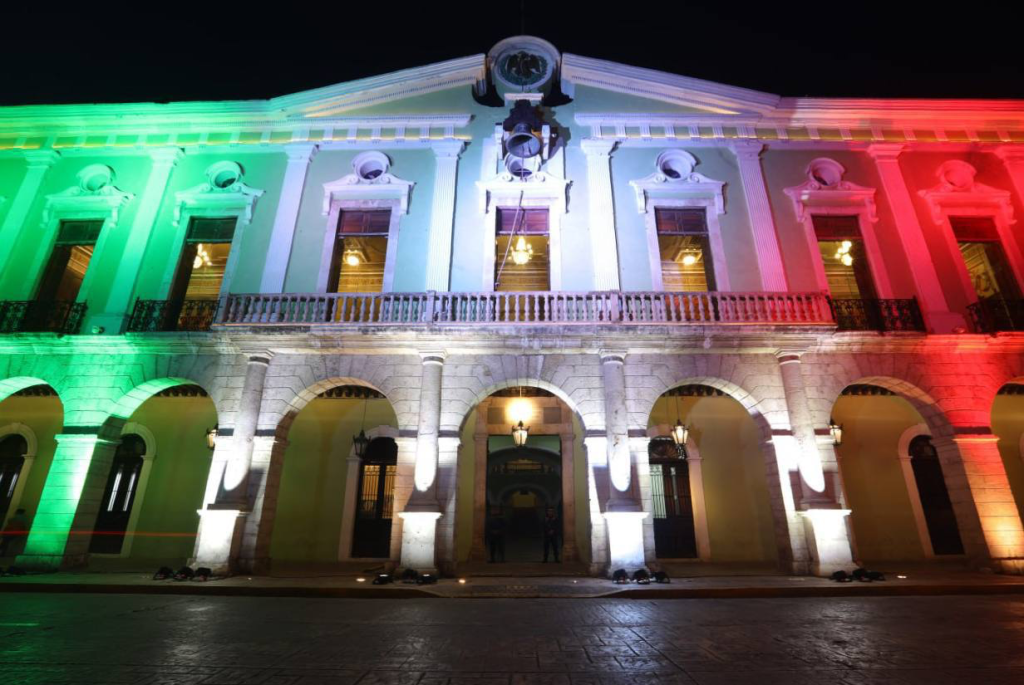 A partir de hoy y hasta el 30 de septiembre, la sede del Poder Ejecutivo estatal lucirá todas las noches con los colores verde, blanco y rojo de la enseña nacional, con lo que Yucatán se suma a estas festividades.