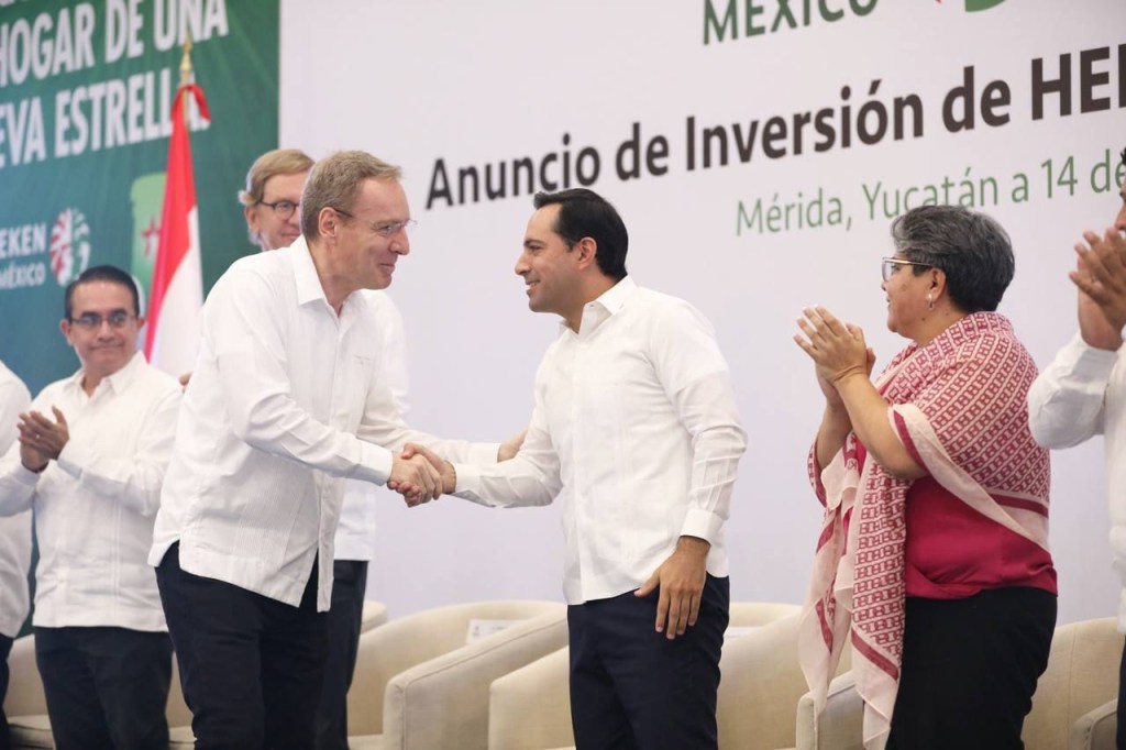 Mérida, Yucatán, 14 de septiembre de 2023.- Atraídas por las ventajas competitivas de Yucatán, importantes empresas continúan eligiendo al estado para venir a invertir y acercar los empleos a las familias yucatecas, como Heineken, que como anunció el Gobernador Mauricio Vila Dosal, instalará una planta cervecera en el municipio de Kanasín, que representará una inversión de 8,700 millones de pesos y la creación de más de 2,000 fuentes de trabajo, entre directas e indirectas.