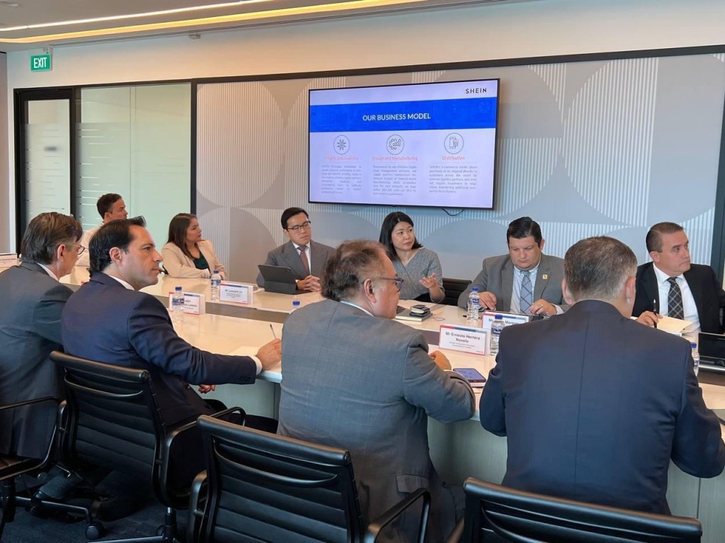 Singapur, 17 de octubre de 2023.- Para seguir con la atracción de más inversiones que se traduzcan en la generación de más y mejores empleos para los yucatecos, el Gobernador Mauricio Vila Dosal se reunió con directivos de la empresa SHEIN, en Singapur, firma de talla mundial del sector de diseño de modas, manufactura y comercio digital, donde presentó a Yucatán como un opción idónea para la inversión, que además se destaca por su cultura industrial, mano de obra calificada y ubicación geográfica privilegiada.
