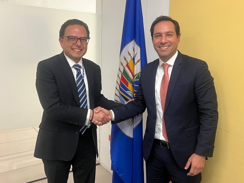 Finalmente, el Gobernador sostuvo una reunión de trabajo con el director del Departamento de Desarrollo Humano, Educación y Empleo (DHHEE) de la Organización de los Estados Americanos (OEA), Jesús Schucry Giacoman, a quien le expuso las ventajas competitivas de Yucatán en materia de educación, empoderamiento de la mujer y empleo, así como el trabajo que se está realizando para construir los cimientos del futuro de la entidad.