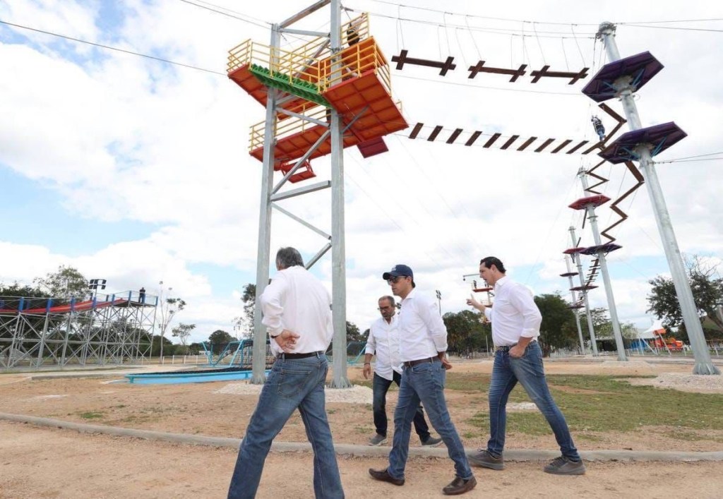 Esta mañana, Vila Dosal supervisó el importante avance de los trabajos de remodelación y modernización de este espacio que se encuentra en la colonia San José Tecoh, donde recorrió todos los atractivos con los que contará, como el nuevo parque acuático, área de juegos infantiles, gimnasio de boxeo, caja de bateo, campos de futbol, cancha de fut 7 techada, área de deportes extremos y campos de béisbol.
