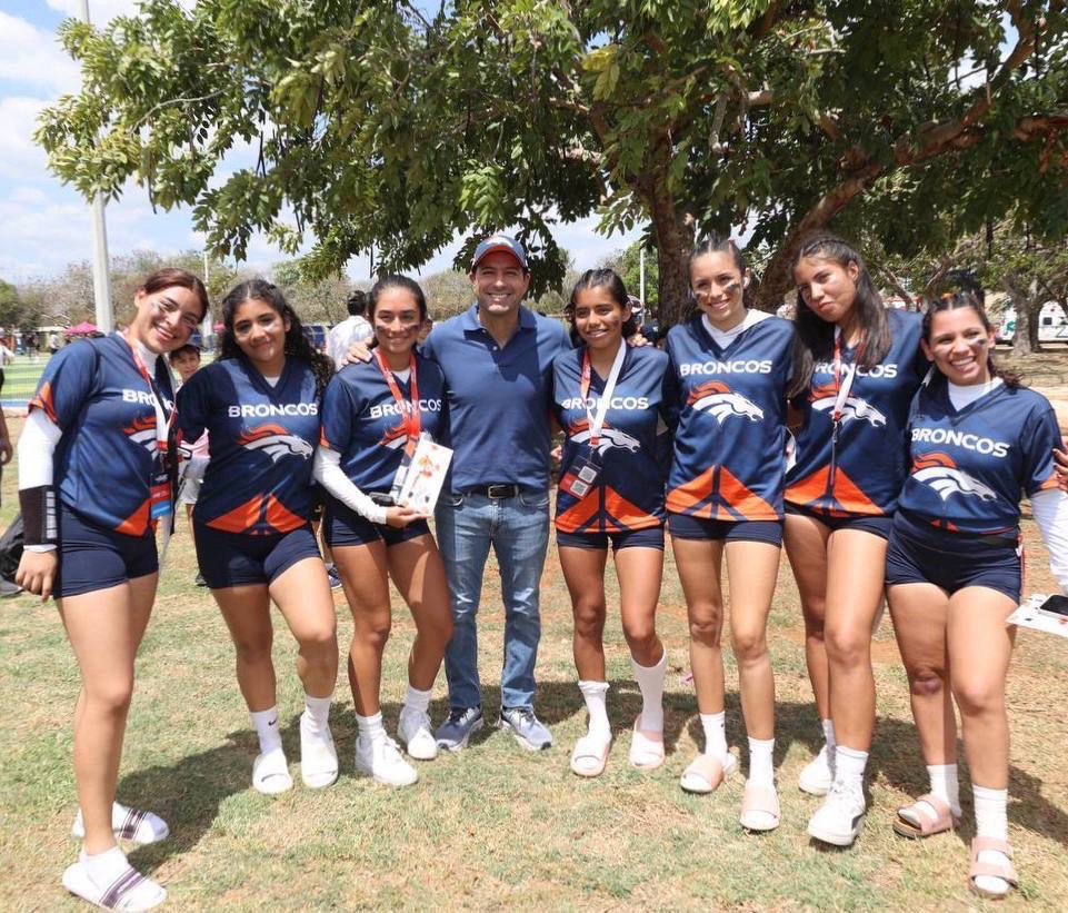 Mérida, Yucatán, 16 de marzo de 2024.- Yucatán es anfitrión del Campeonato Nacional Femenil U-16 de Tochito Bandera, torneo que, producto del trabajo en equipo entre el Gobierno del Estado, la NFL México y la Fundación Broncos de Denver, por primera vez sale de Estados Unidos para hacerse en México y con el cual se hace historia, por lo que el Gobernador Mauricio Vila Dosal visitó este encuentro que reúne a alrededor de 400 deportistas de 27 estados del país.