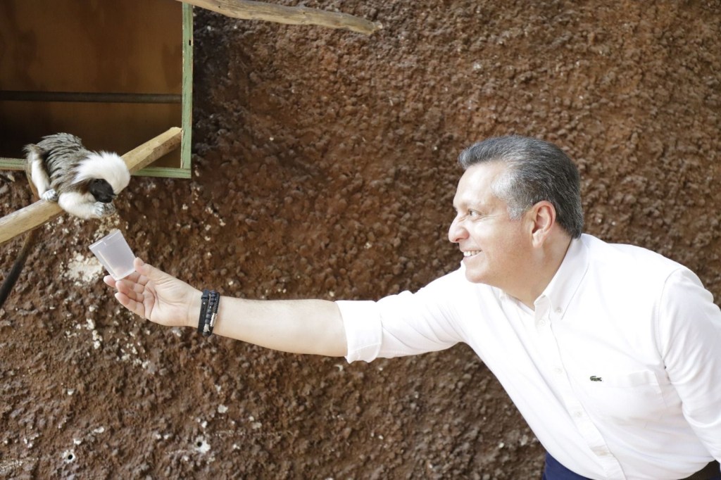 Para constatar estas acciones, el Alcalde alimentó a los monos Titi con una dieta especialmente balanceada para esta especie y supervisó la instalación de un juguete hecho de plástico en la jaula del ocelote.