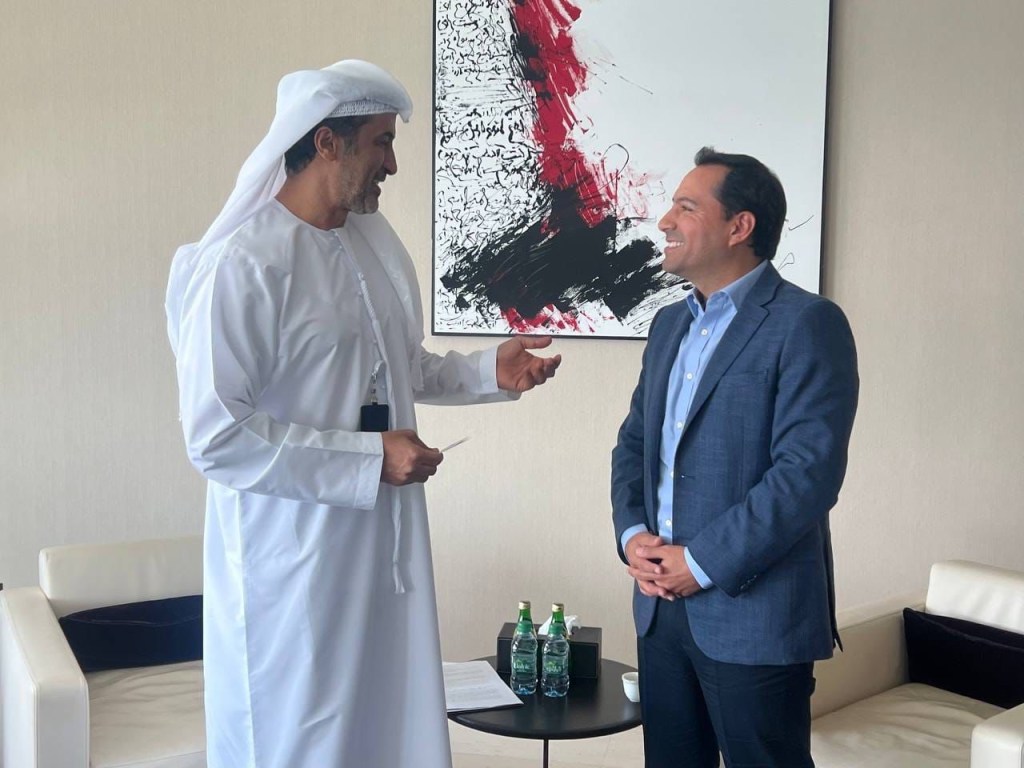 Posteriormente, Vila Dosal llevó a cabo una reunión de trabajo con el Ministro Adjunto de Asuntos Económicos y Comerciales de los EAU, HE Saeed Alhajeri, y con el Embajador de México en ese país, Luis Alfonso de Alba Góngora, para dialogar sobre el desarrollo del Polo Tecnológico que se busca implementar en Yucatán, como un proyecto conjunto con el Gobierno federal, así como para abordar el rol de nuestro estado como referente en proyectos sustentables y para fortalecer las relaciones de intercambio con nuestra entidad.