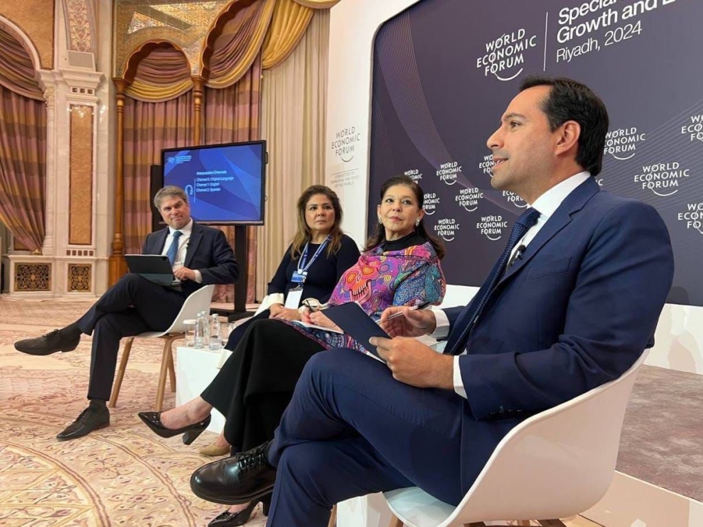 Riad, Arabia Saudita, 30 de abril de 2024.- El Gobernador Mauricio Vila Dosal participó, a invitación de la Secretaría de Relaciones Exteriores (SRE) y en calidad de presidente de la Conferencia Nacional de Gobernadores (Conago) en la mesa panel “Cambios Globales, el momento de México y el marco norteamericano” como parte de la reunión especial del Foro Económico Mundial (WEF por sus siglas en inglés), donde expuso ante empresarios de diversas partes del mundo los proyectos estratégicos que han posicionado a Yucatán como líder en nearshoring y que impulsan la infraestructura, logística y generación de energía, para continuar atrayendo más empleos y construyendo un futuro más sostenible para las y los yucatecos.