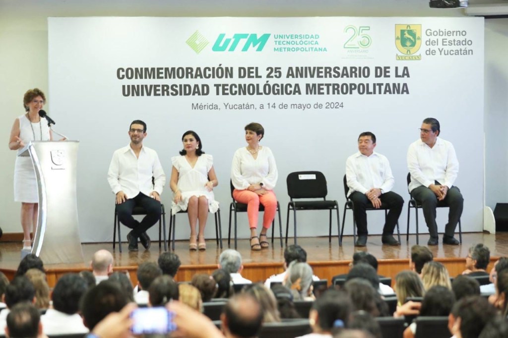 Mérida, Yucatán, 14 de mayo de 2024.- La encargada del Despacho del Gobernador, María Fritz Sierra, encabezó la conmemoración del 25 aniversario de la Universidad Tecnológica Metropolitana (UTM), donde reiteró el compromiso de seguir haciendo que los cambios en Yucatán se vean y se sientan a través de la educación, brindando más oportunidades a los jóvenes yucatecos.