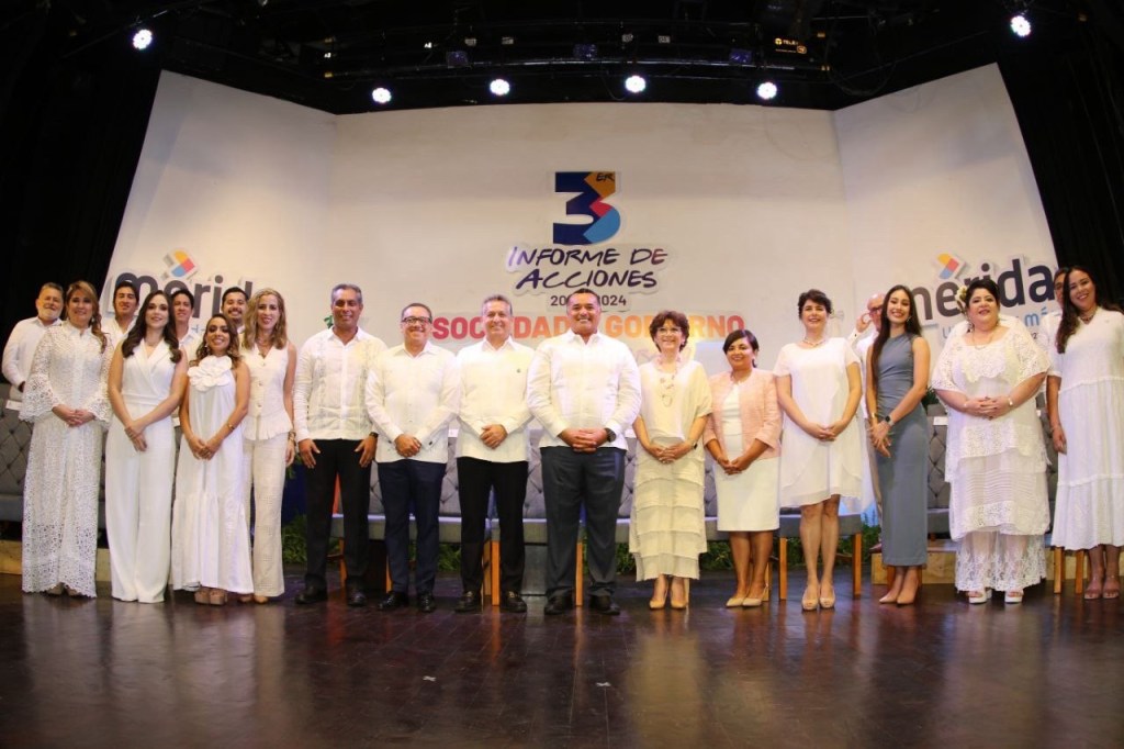 Mérida, Yucatán, 19 de agosto de 2024. – Ante representantes de los diferentes sectores de la sociedad, el Alcalde Alejandro Ruz Castro presentó el tercer y último informe del gobierno municipal 2021-2024, donde expuso los avances y los logros alcanzados mediante el trabajo en equipo y una visión humanista que colocó el desarrollo social y económico de las familias como eje de todas las acciones municipales.