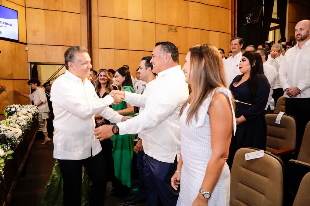 Acompañado del Alcalde con licencia, Renán Barrera Concha, y la Alcaldesa electa, Cecilia Patrón Laviada, Ruz Castro recordó que los logros alcanzados son resultado del trabajo en equipo con la sociedad y el compromiso de la actual administración por impulsar acciones y programas que aseguren un futuro próspero y sostenible para nuestra ciudad.